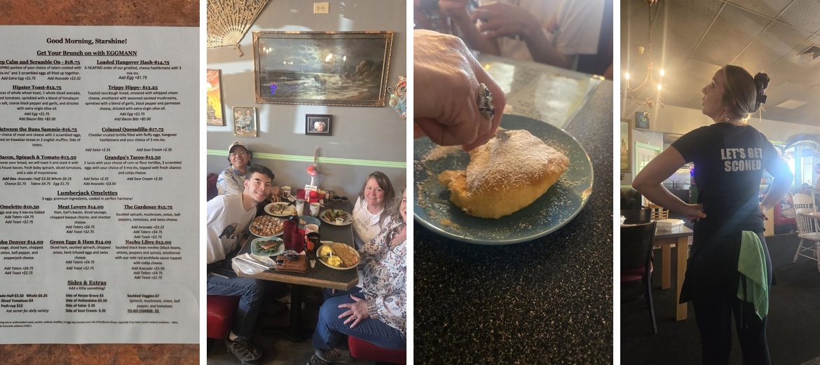 Inside, Egg Mann and Earl blends quirky decor with comfort, creating a relaxed and fun dining room. The walls sport an eclectic mix of pictures and oddities, like an Indian rickshaw, reflecting a uniquely welcoming personality. Tables and seating accommodate kids and solo diners comfortably. The kitchen turns out classics and creative twists, from huevos rancheros to crunchy French toast and hangover hash. Their cocktails, especially guava mimosas, complement the hearty breakfast plates. Staff offer cheerful, personalized service, and owner check-ins add a homely vibe. Early arrival is rewarded with a hot scone, which guests love. The atmosphere feels like brunch with friendly neighbors, not just a meal service.